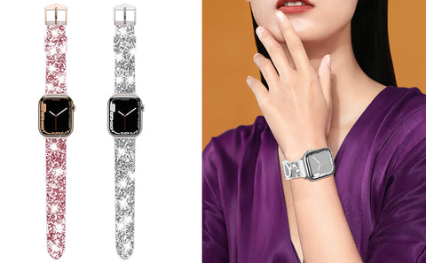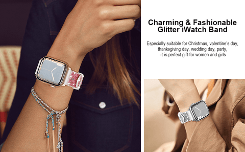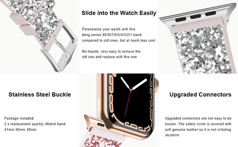 【Material】NOT Itchy Anymore!! The glitter iwatch se bands for women is made of inner flexible silicone + outer pu and 3D glitters powder, comfortable touch feeling and skin-friendly. the adapters and buckle adopt the premium well polished stainless steel